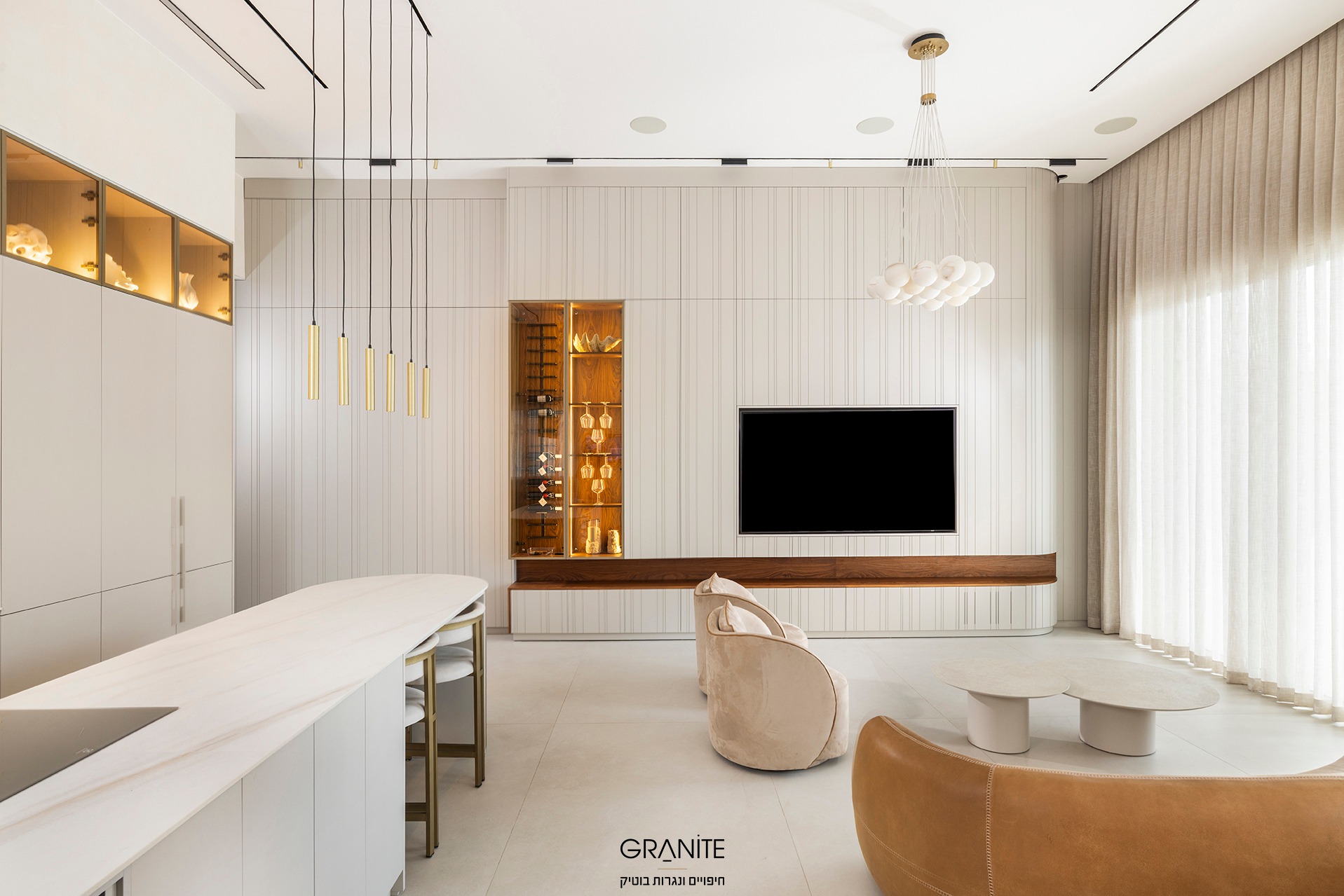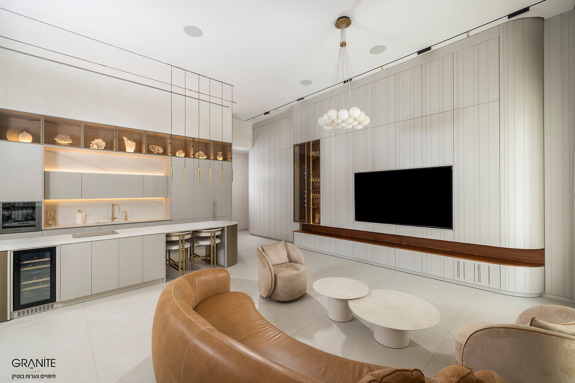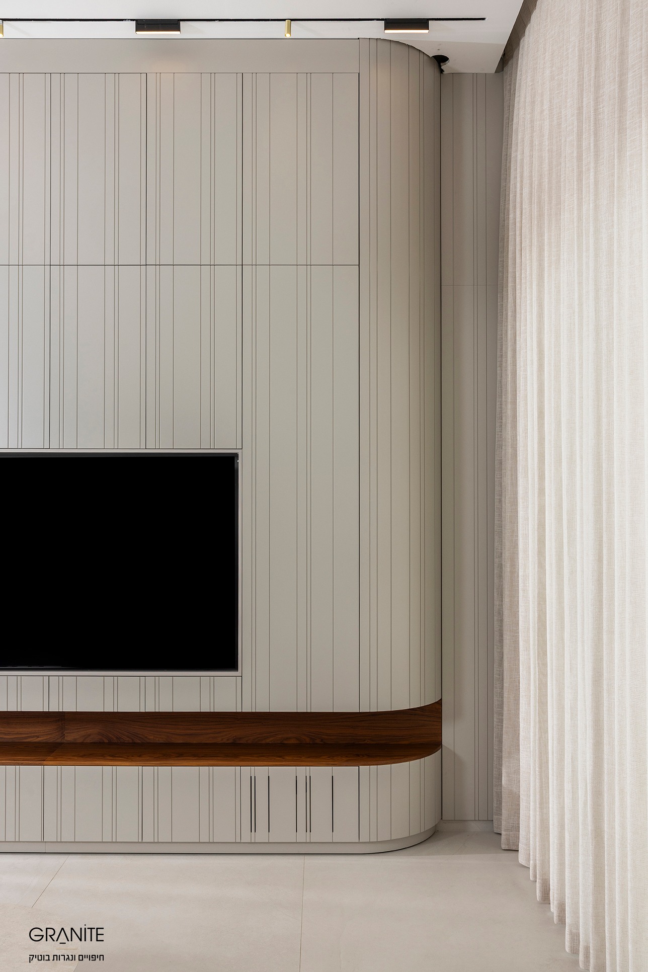 משתלב בהרמוניה מושלמת, והטלוויזיה בקו אפס ליצירת מראה נקי ואחיד.